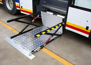 輪椅登車平臺的伸縮和外擋板的操作為電驅(qū)動。上下升降為液壓驅(qū)動。所有功能均由手持單元控制或可選遙控操作。輪椅升降機可安裝在各種輕型客車、城市客車和旅游客車的側(cè)門下??筛鶕?jù)車輛門的尺寸進行調(diào)節(jié)導(dǎo)板尺寸。