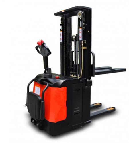 2,電動托盤堆垛叉車:該產(chǎn)品承載能力為 1.0~1.6噸,作業(yè)通道寬度一般為2.3~2.8米,在結(jié)構(gòu)上比電動托盤搬運(yùn)叉車多了門架,貨叉提升高度一般在4.8米內(nèi),主要用于倉庫內(nèi)的貨物堆垛及裝卸;
