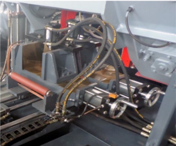 HXSK金屬帶鋸床采用雙立柱結(jié)構(gòu),保證導(dǎo)向精度,鋸削穩(wěn)定可靠;鋸床傳動機構(gòu)精密平衡校正,減少振動確保鋸帶不易斷齒、拉齒;液壓鉗口夾緊,方便夾持短小物料,適合模具材料切割;可加上壓緊裝置,加上之后可成束鋸切工件。